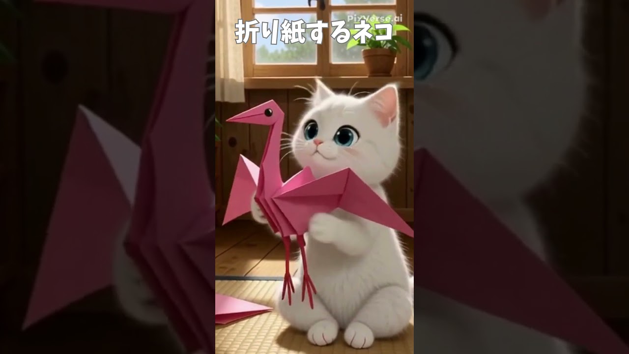 説明文 | #cat #cute #healing #ai #ねこ #かわいい ♯癒し 折り紙をしているネコちゃん上手にできるかな?... |