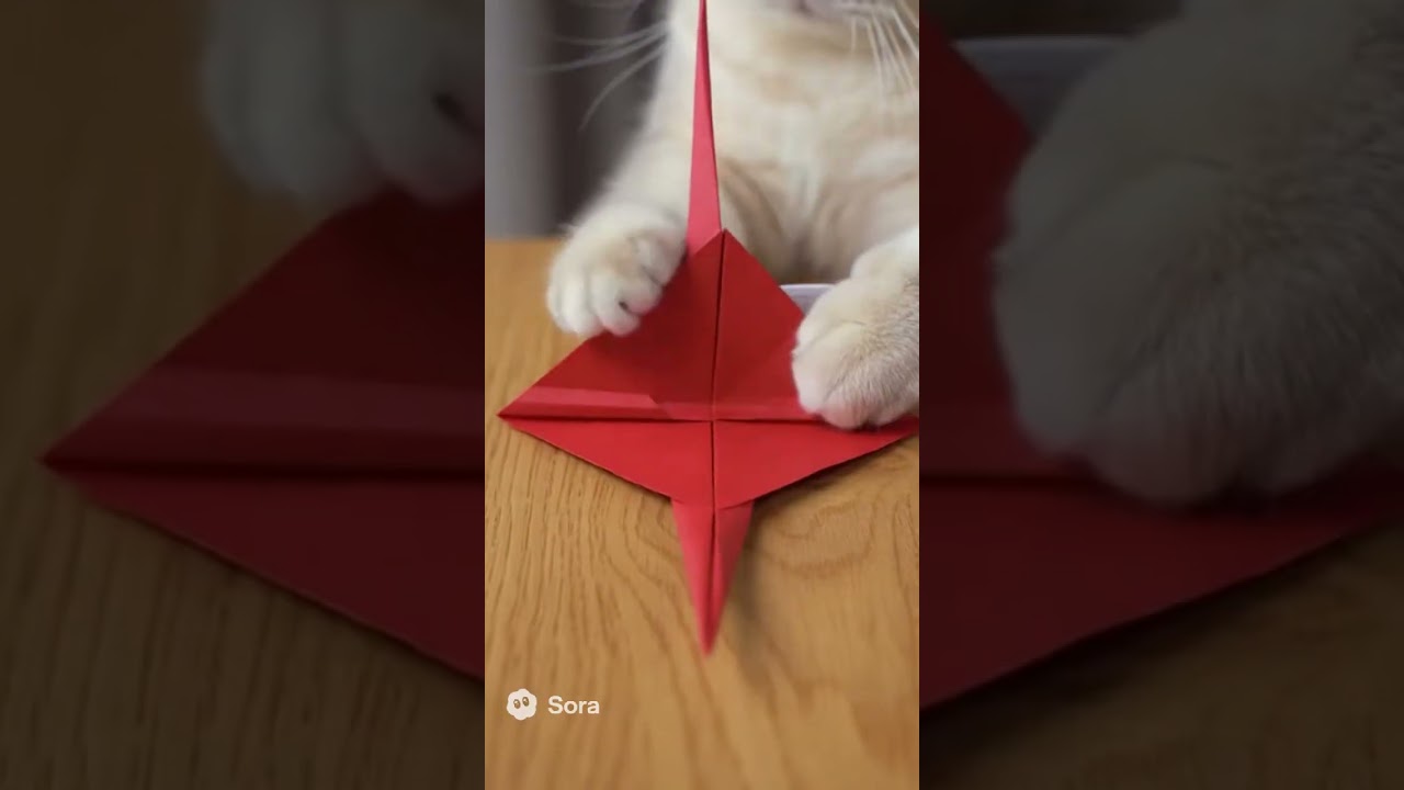 折り紙を折る猫#折り紙  #子猫  #鶴 – interesting cat