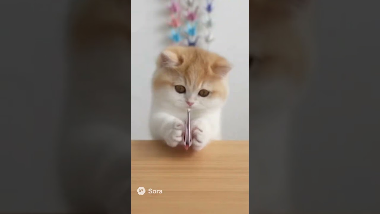 折り紙を折る猫#折り紙  #子猫   – interesting cat