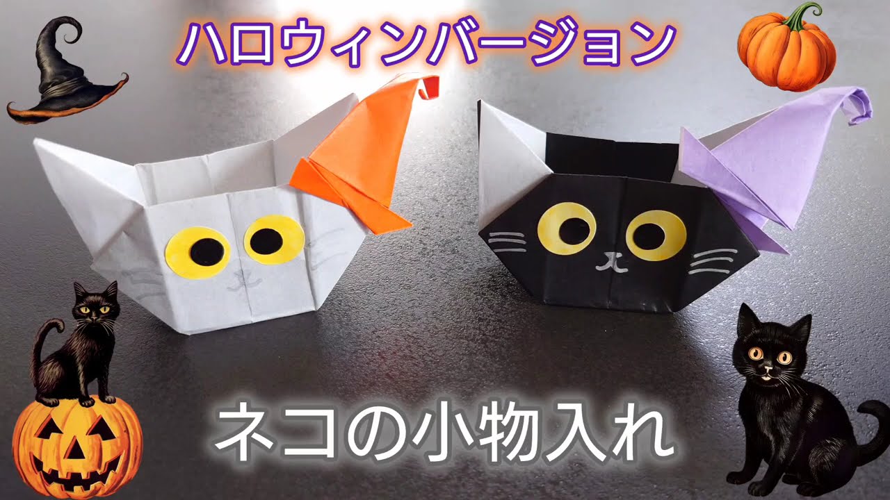 説明文 | ♡ネコの小物入れ~ハロウィンバージョン~♡ネコの形の小物入れです!お菓子屋小さな小物を入れられます。☆用意する物☆・15cm 1まい・7.5cm 1まい・シール・マジック・のり... |