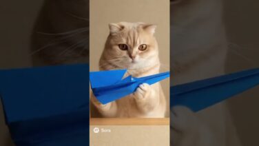 折り紙を折る猫#折り紙  #子猫  #飛行機 – interesting cat